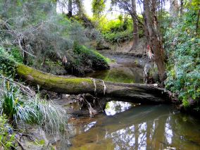 De Prospect Creek stroomd vanaf het Prospect Reservoir met zijn lengte van 26 km al kronkelend uiteindelijk naar de Georges River, die weer uitmond in zee nabij Sydney. Helaas is deze kreek erg vervuild. Er wordt beweerd dat bij hoog water - dat na een fikse regenbui soms meer dan twee meter kan stijgen zoals we mee maakten - alle troep die men kwijt wil in de kreek wordt gedumpt. Tot aan kadavers toe. Hoog in de bomen hangen dan ook flarden plastic als stille getuigen van hoe hoog het anders rustig kabbelende water kan komen. Tijdens ons verblijf werd een folder huis aan huis bezorgd, waarin de bezorgdheid werd uitgesproken over deze vervuiling en waarop de mensen konden aangeven hoe een en ander te gerealiseerd kan worden om de zaak te schonen en hoeveel uren eventuele vrijwilligers er voor over hadden om hieraan mee te helpen. Ons gastgezin had niet veel hoop. Mensen willen hier wel werken, maar alleen tegen betaling, zo was hun mening. Het bleek ons dat zelf aanwonenden geen flauw benul hadden wat voor een rijkdom aan reptielen deze kreek bezit. Sinds ons vorige bezoek aan Australië in 1995 was in deze omgeving wel het nodige veranderd. Er waren enkele bedrijven verrezen, waaronder een groot recyclingsbedrijf dat de omgeving nogal vervuilde met weggewaaid papier en plastic. Rond de kreek was een breed wandel- en fietspad aangelegd.