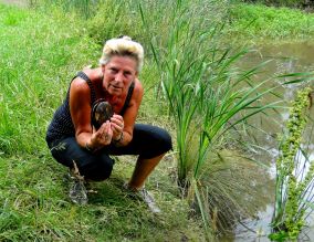 In de Sydney-regio komt slechts één soort Slangenhalsschildpad voor nml. de Eastern Snake-necked Tortoise Chelodina longicollis. Het is voor deze regio een gewone soort – die een uitzonderlijke lange nek heeft - en die vooral bij nat weer tijdens het migreren vaak weilanden en straten oversteekt, waarbij in het laatste geval de nodige doden vallen. Tijdens een regenachtig dag vonden wij een dier dat vanuit de kreek op een twee meter hoger gelegen grasveld was gekropen. De dieren kunnen een schildlengte krijgen van 26 cm. Onder de kin draagt de schildpad twee wratachtige uitsteeksels, de zgn. ’barbels’. Het dier houd van stilstaand water, lagoons en moerassen. In deze stilstaande waters is het niet ongebruikelijk meerdere exemplaren bij elkaar te zien liggen om samen van de zon te genieten. Als ze worden opgeraapt scheiden ze een doordringende, muskusachtige stof af uit hun cloaca. Dit om de belager af te schrikken. Op zonloze of regenachtige dagen leggen de schildpadden tussen september en december 8-24 eieren die - afhankelijk van de temperatuur - na ongeveer drie maanden uitkomen. Door de nogal wisselende weersomstandigheden hebben we het genoegen niet gehad jonge diertjes te vinden. Het voedsel van deze schildpadden bestaat uit insecten, wormen, slakken, zoetwaterdiertjes, vissen en plantaardig voedsel. De jonge schildpadjes op hun beurt worden vooral gegeten door vissen en vogels.