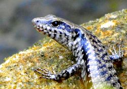 Hoewel bekend is dat dit reptiel nogal schuw is, ondervonden wij daarvan geen hinder. De hagedissen lieten zich zelfs vrij gemakkelijk en tot op korte afstand fotograferen.