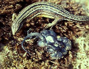 Zoals de naam al doet vermoeden baart deze hagedis levende jongen. Een gevolg daarvan is dat de lichamen van zwangere vrouwtjes in de maanden juni en juli nogal opgezwollen zijn. Aangezien het bij zich gedragen legsel meer dan de helft van het eigen gewicht kan bedragen, mist het dier veel snelheid en gedraagt zich zo onopvallend mogelijk. Het grote voordeel van het levendbarend zijn is dat het verspreidingsgebied zich tot de poolcirkel kan uitstrekken. De pas geboren diertjes zijn verpakt in een doorschijnend vlies, waar ze direct of na langere tijd uitbreken. Het aantal jongen varieert van drie tot elf, hoewel soms grotere legsel worden geproduceerd. De diertjes zijn donkerbruin tot zwart van kleur met een metaalachtige glans. De kopromp-lengte bedraagt 20 tot 24 mm en het gewicht is ongeveer 0.2 gram. De jongen zijn het evenbeeld van de ouders en staan direct op eigen benen. Van ouderzorg is immers geen sprake. Voor het winterseizoen invalt, kunnen de diertjes nog 10 mm groeien. Na twee winters zijn de jongen geslachtsrijp.
