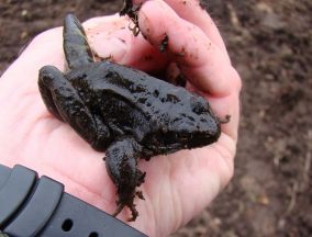 Voor de Bruine kikker bleek het schonen op dit tijdstip in ieder geval catastrofaal. De dieren hadden zich voor de naderende winter teruggetrokken in een smal slootje dat bijna geheel was dichtgegroeid. Na ongeveer 100 meter schonen telde ik reeds 45 kikkers die traag uit het op de wal gekieperde materiaal kropen. Dieren die niet snel genoeg waren kregen al een tweede lading over zich heen en soms zelfs een derde. Vele kikkers zullen daarbij nog zijn omgekomen door verstikking in de modderbrij. Drie dieren waren ernstig verminkt. Door het heen-en-weervliegende mes in de maaikorf waren bij een dier beide achterpoten totaal afgesneden, bij een dier alleen een achterpoot, bij een ander dier hing de achterpoot er nog net bij. Een vierde exemplaar moet zwaar verwond zijn geweest, aangezien mijn hand geheel was bebloed toen ik het dier terugzette. Verder kon ik wat vissen betreft een Snoekje met een lengte van 20 cm redden; een Zeelt van eveneens 20 cm en nog twee Grote modderkruipers.