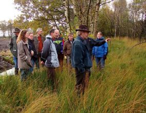 Ook werd er een bezoek gebracht aan het proefterrein Meuleveldweg onder Zandhuizen, waar al maatregelen zijn uitgevoerd. Te zien was dat het terrein zoals het hoort gefaseerd was geplagd en gedeeltelijk verhoogd en was de afwatering en drainage verbeterd. Doordat er tevens bosopslag is verwijderd is de oppervlakte en de variatie van de heide groter geworden en zijn er nattere omstandigheden ontstaan. Hiervan profiteren de bijzondere planten en dieren. Monitoring moet uitwijzen in hoeverre dit gebeurt.