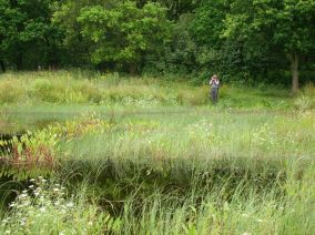 Zes of zeuven keer in ’t jaor lopt Andries hier een vaaste route deur et Diaconievene. Een zonuumde ‘Monitor-route’. Hi’j legt dan alles wat zien zintugen waornemen vaaste op een opschriefbriefien zoas o.e. of de zunne schient en hoe fel dan wel niet. Hi’j kikt es naor et wolkedek en -slim van belang- uut wat richting de wiend op dat mement wi’jt. Die wiend bliekt laeter ok slim van belang awwe in de buurt van een adder of een slange kommen want dan moe’n we die ‘tegen de wiend in’ liggen zien. Over et weer schrieft Andries te slotte ok nog de juuste temperetuur op, op zien briefien. Zien buse-termometer geft vandaege op dit plak krek 17 graoden en da’s een mooie waarmte zee Andries.