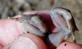 Op weg naar huis 's avonds zagen we de pas gemetamorfoseerde dieren de weg oversteken. De lengte was ongeveer 2.5 cm. Van een knoflookgeur werd niks gemerkt