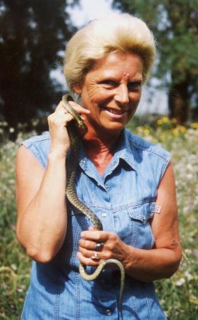 Onze eerste ontmoeting met de Pijlslang was een dier dat in de tuin van het appartement werd aangetroffen. Gewapend met de fotocamera was ik ondanks de grote hitte toch nog even op zoek naar hagedissen (over Engelsen en dolle honden gesproken). Toen ik in de hoge vegetatie geritsel hoorde en ik even rondkeek, zag ik uit een holletje onder een olijfboom een slangenstaart steken. Toen ik het dier voorzichtig naar buiten trok, dit om vooral geen wervels te beschadigen, scheen er aan de lengte bijna geen einde te komen. Het bleek een Pijlslang te zijn met een lengte van naar schatting tussen de 180-200 cm. Het dier kan zelfs tot 2.50 m lang worden en is daarmee een van de langste slangen van Europa. Het is een overdag actieve slang die zeer snel is. Het dier leeft in droge, open biotopen, met enige vegetatie, maar ook met struikgewas, stapelmuurtjes en rotshellingen. De slang valt onder de toornslangen en het dier deed zijn naam dan ook eer aan. Het ging meteen in de aanval en ik had de grootste moeite de slang – bij de staart houdend – van mij af te houden. Keer op keer bracht de slang het lenige lichaam omhoog en viel met open bek bliksemsnel aan. Hoewel het dier niet giftig is kan het gemeen bijten. Ooit werd ik in mijn pink gebeten door een Balkantoornslang Coluber gemonensis die slechts 60 cm lang was. Het dier bleef een minuut lang kauwende bewegingen maken voor het uiteindelijk losliet en ik voelde de tandjes steeds dieper en pijnlijker het vlees binnen dringen. Lostrekken is niet aan te raden vanwege de naar achteren staande tanden van de slang. Overigens leverde de kauwende slang en de heftig bloedende pink fraaie videobeelden op. Deze Pijlslang was drie keer zo lang; een reden te meer om op veilige afstand te blijven. Hoewel Grieken niets met slangen hebben wist een buurman van het appartement te vertellen, dat ze deze slang graag in hun buurt zagen, aangezien ze heel goed wisten dat het een grote muizenverdelger is. Te dicht in de buurt was echter niet meer leuk. Zo vertelde de eigenaar van het appartement eens vol trots dat hij net een grote slang – die tussen het hooi in de schuur van zijn ’farm’ zat - had onthoofd. Toen ik de man er op attent maakte dat het hier om een onschuldige en erg nuttige slang ging, haalde hij de schouders op en zei: ’beter hij dood dan ik’. Het vrouwtje zet 5-18 eieren af. De jongen zijn bij de geboorte ongeveer 30 cm lang en levendig getekend.