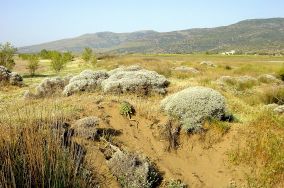 Een duinachtig terreintje lang de Baai van Kalloni wordt door ons al die jaren op landschildpadden onderzocht en het blijkt dat het aantal dieren helaas langzaam afneemt. Deze smalle kuststrook is naar schatting een kilometer lang en op zijn breedst 100 meter. Maar liefst rond de zestig landschildpadden werden hier het eerste jaar geteld. Het gaat op Lesbos om de ondersoort Testudo graeca ibera. Het terrein is begroeid met russen en diverse grassen, afgewisseld met bloeiende planten als Kamille en Klaproos. Her en der staan stekelige struiken van een fraaie Wolfsmelk. Zoals op geheel Lesbos het geval is, is het gebied erg vervuild met allerlei troep die hier door de bewoners en badgasten wordt gedumpt. De gevonden dieren worden elk jaar door ons gemerkt met een zwarte viltstift om dubbeltelling te voorkomen. Na een aantal weken is van dit merkteken nauwelijks iets te lezen, aangezien de stift niet zo watervast is als wordt vermeld en natuurlijk door slijtage. Opvallend is dat de populatie steeds hoofdzakelijk uit jonge dieren bestaat. De kleinsten hebben een lengte van nauwelijks vijf centimeter, oplopend tot ongeveer 14 cm. Van de heel jonge dieren is het geslacht nog niet te bepalen, maar de iets oudere dieren blijken steeds vrouwtjes te zijn. Een enkele keer wordt er ook wel een volwassen vrouwtje gevonden. Het verschil in sexratio is misschien wel te verklaren. In het voorjaar zijn de mannetjes vaak op zoek naar vrouwtjes, terwijl de volwassen vrouwtjes op zoek zijn naar een geschikte legplaats. Alle schildpadden zien er steeds goed doorvoed uit, ondanks de vele teken die – vooral op iets grotere exemplaren – worden aangetroffen.